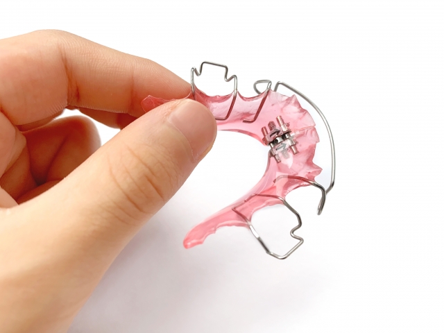奥歯に金属製のバンドを装着して、上あごの幅を広げる装置です。